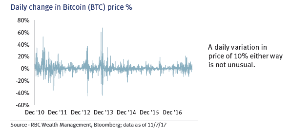 Focus Article December 2017 RBC WEALTH MAAGEMET Global Insight New kids on the blockchain Daily change in Bitcoin (BTC) price % Source - RBC Wealth Management, Bloomberg; data as of 11/7/17 A daily variation in price of 10% either way ... Document Viewer